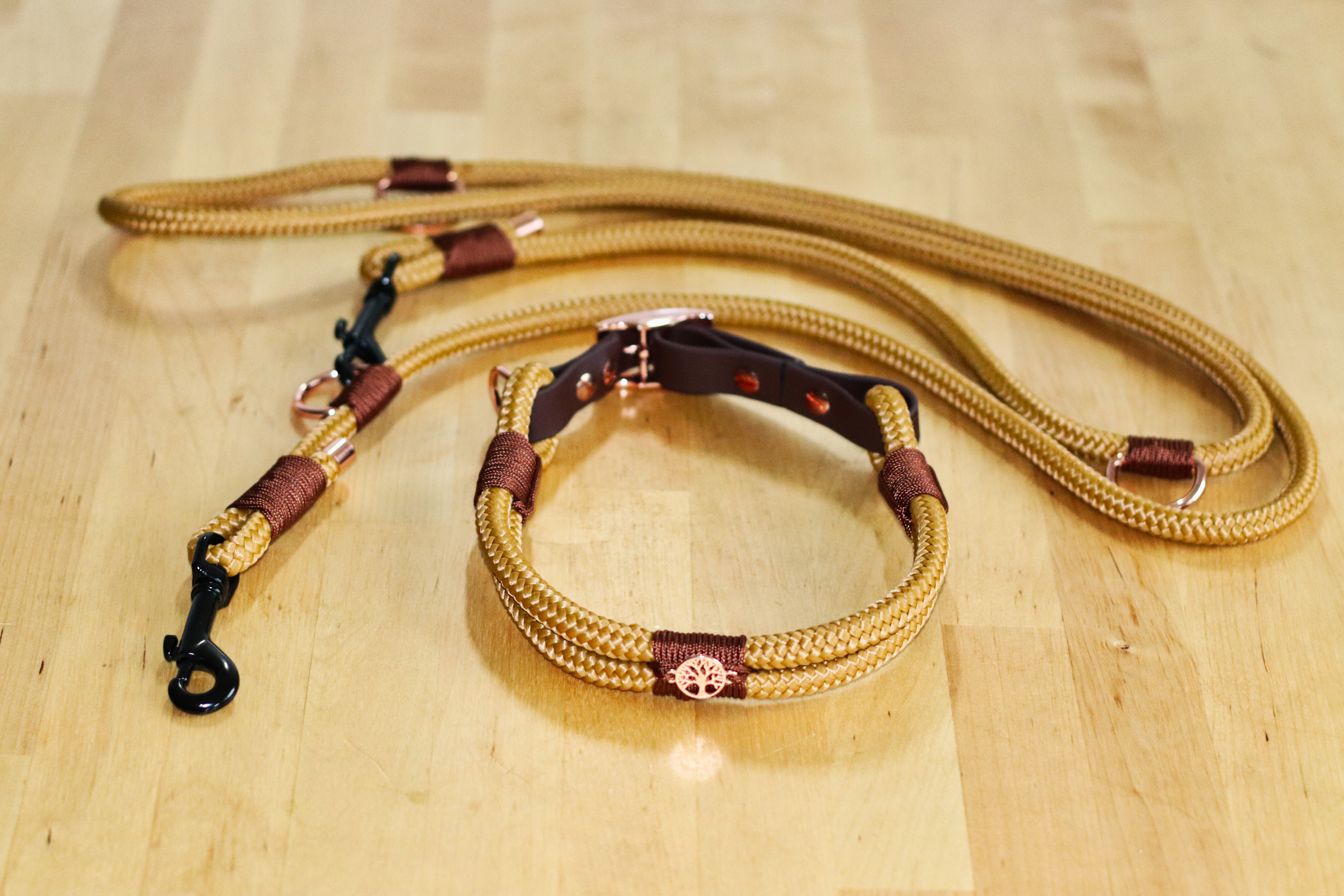 Halsbänder und Leinen aus PPM Seil zusammen als Sets