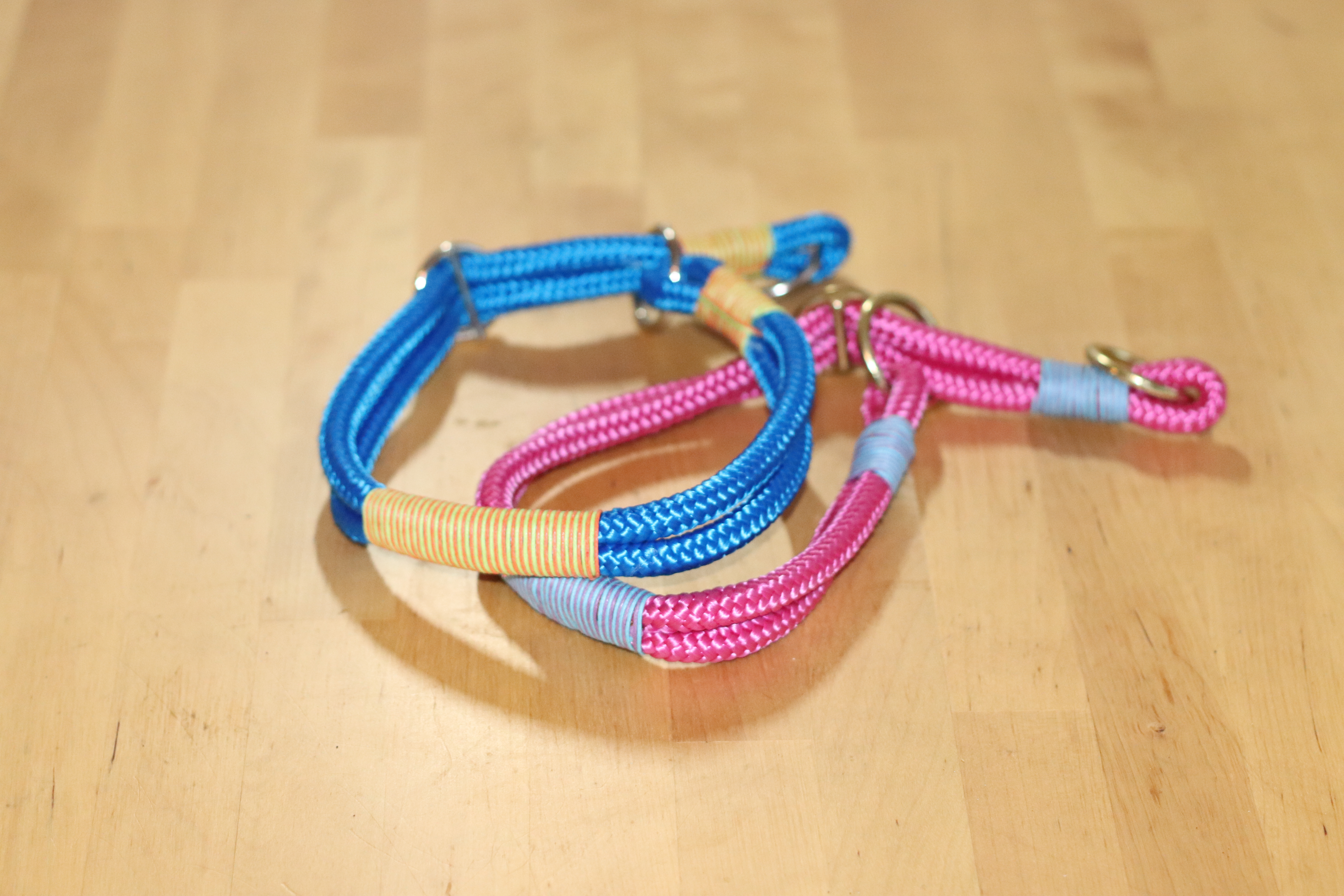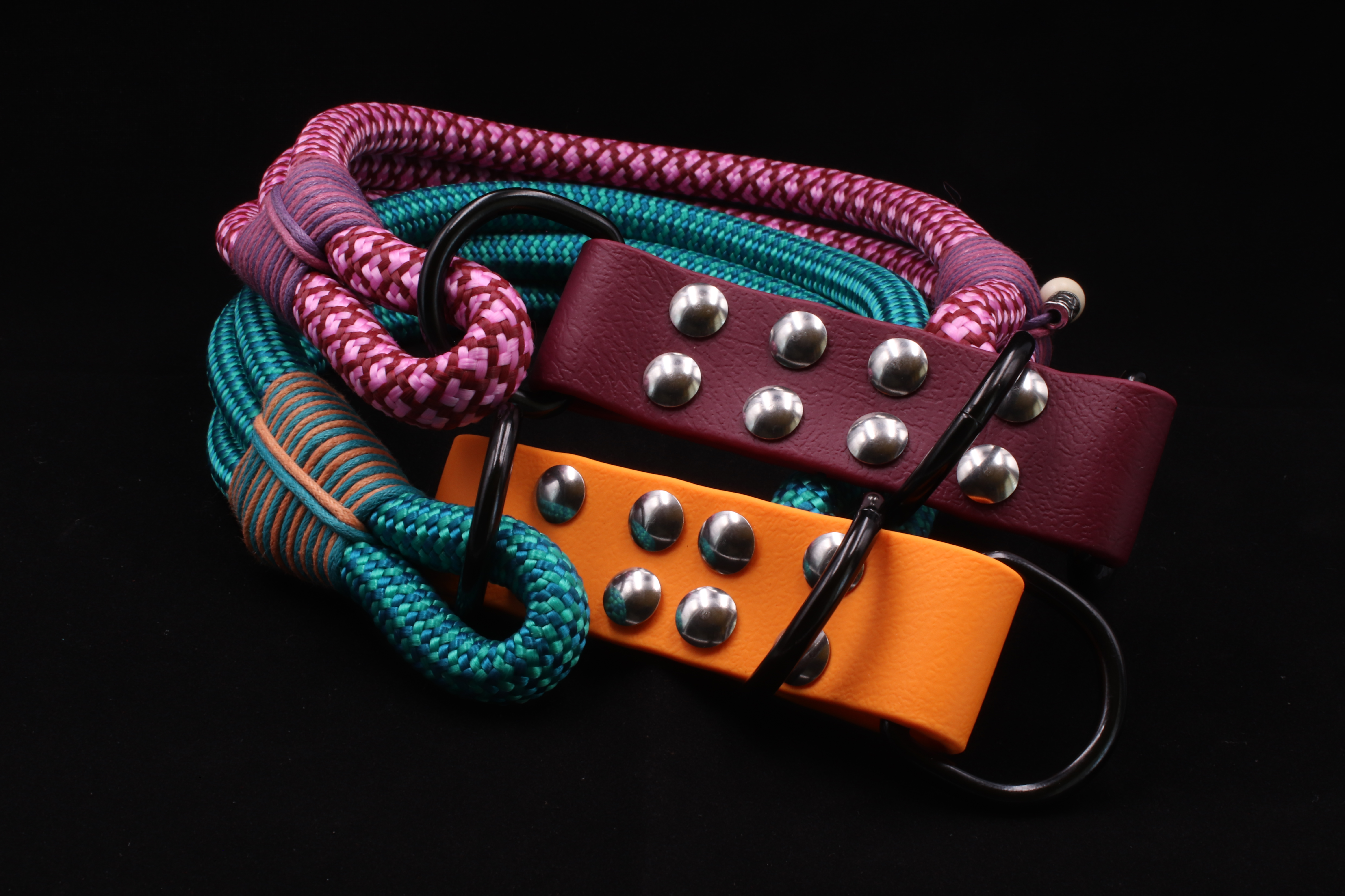 Zwei- und dreireihige Zugstopphalsbänder mit einfachem Stopperring oder mit Leder/Biothaneadapter
